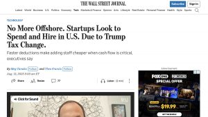 No More Offshore. Startups Look to Spend and Hire in U.S. Due to Trump Tax Change.